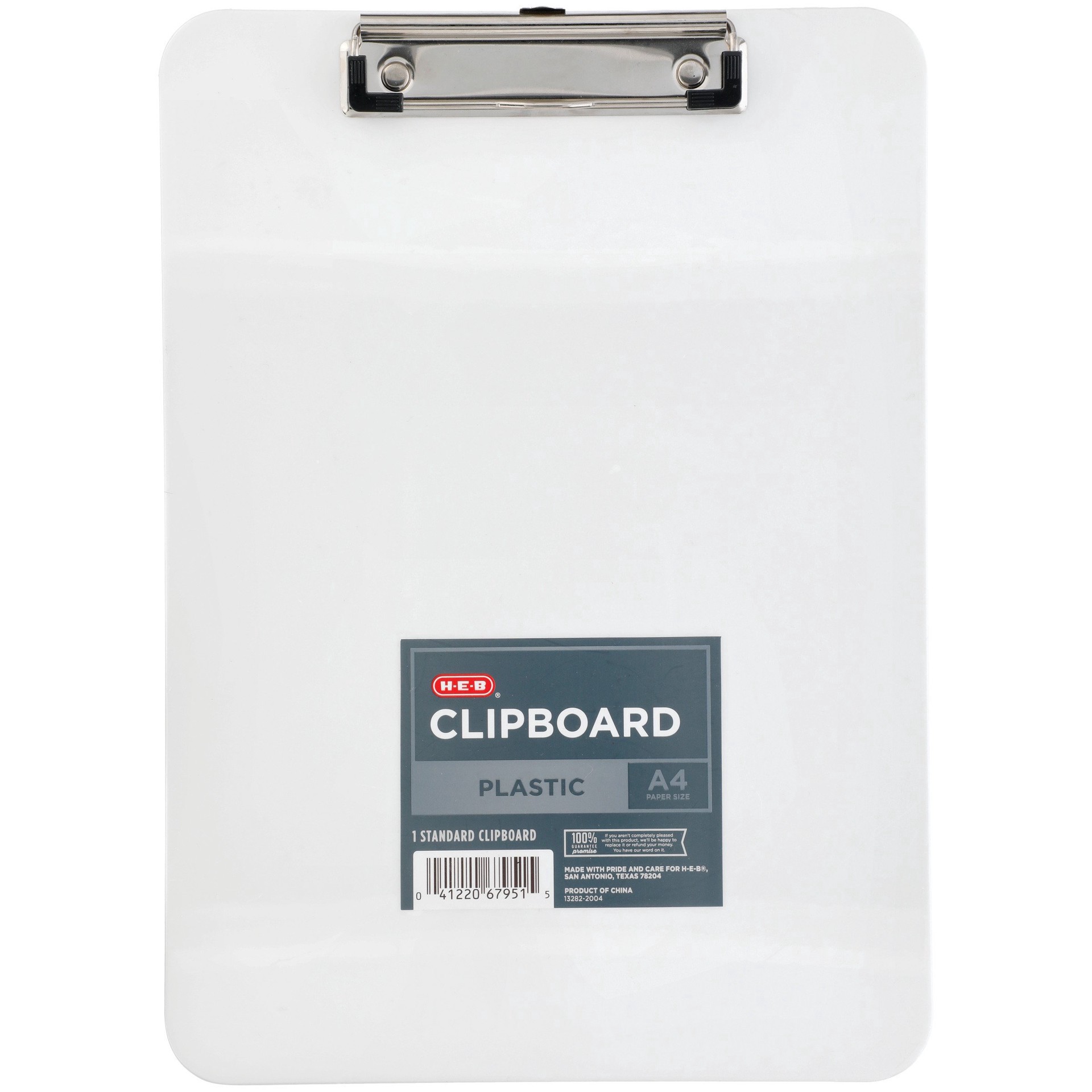 Keep your documents secure and easily accessible with the H-E-B Standard Plastic Clipboard. Measuring 8" x 11", this clipboard is perfect for holding standard letter-sized papers. The durable plastic …