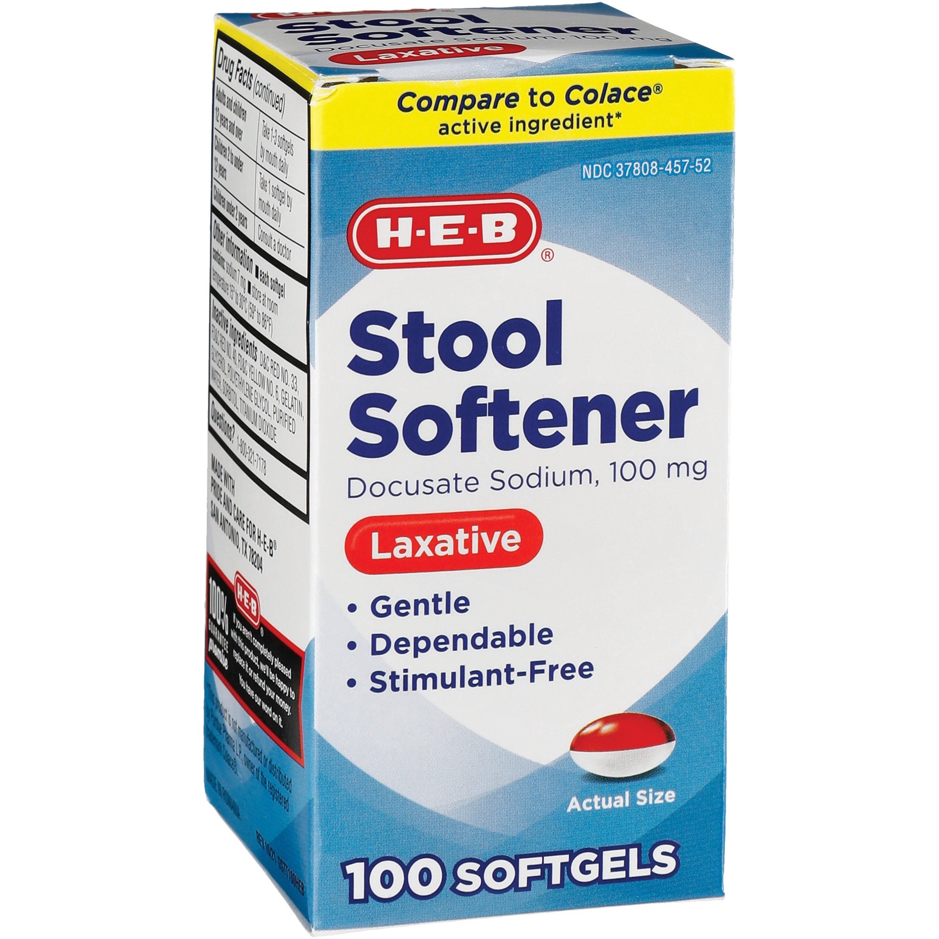 Get constipation relief with these H-E-B docusate sodium stool softener laxative softgels. Just 1 to 3 softgels daily relieve occasional constipation (irregularity) and generally produces a bowel move…
