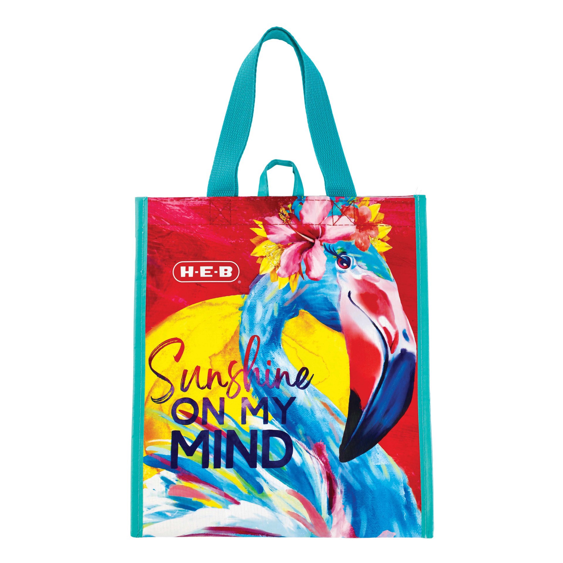 slide 1 of 1, H-E-B Sunshine Mind Flamingo Insulated Reusable Shopping Bag, SM