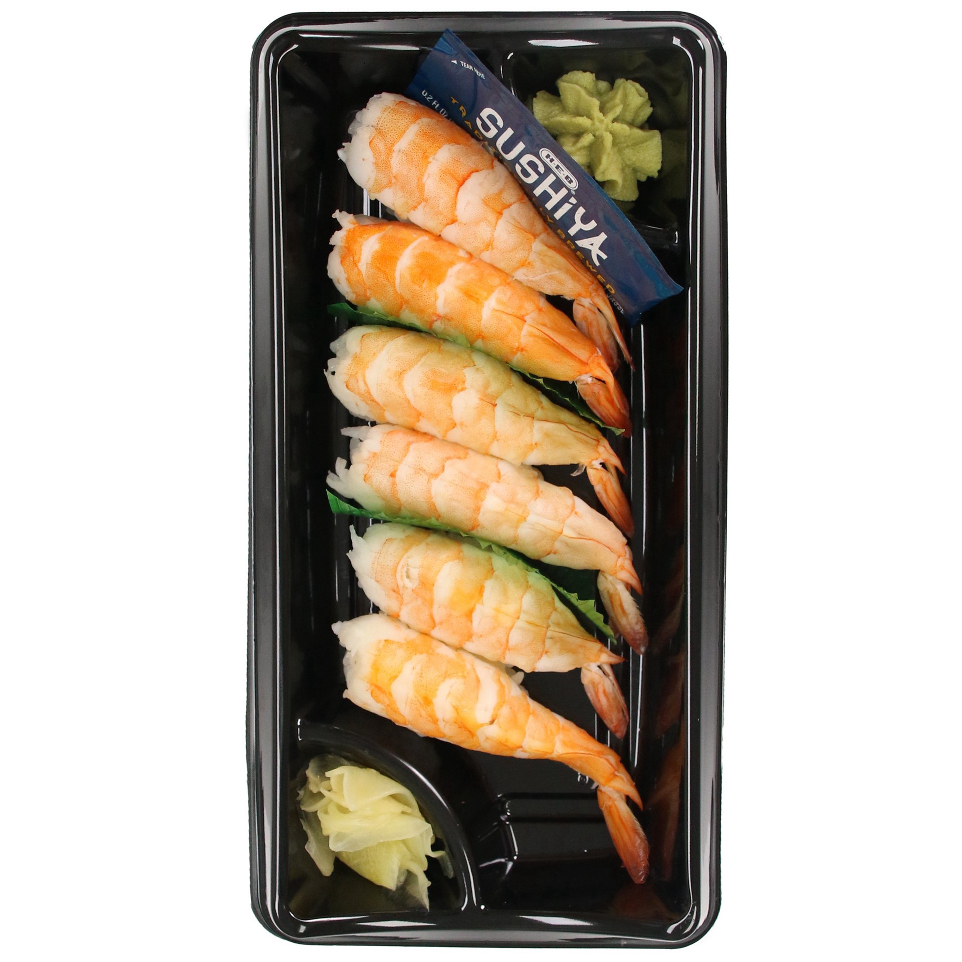 Freshly made in store, this nigiri sushi from H-E-B Sushiya features sustainably sourced butterflied shrimp that are firmly pressed onto mounds of sticky sushi rice. Although you can use chopsticks, n…