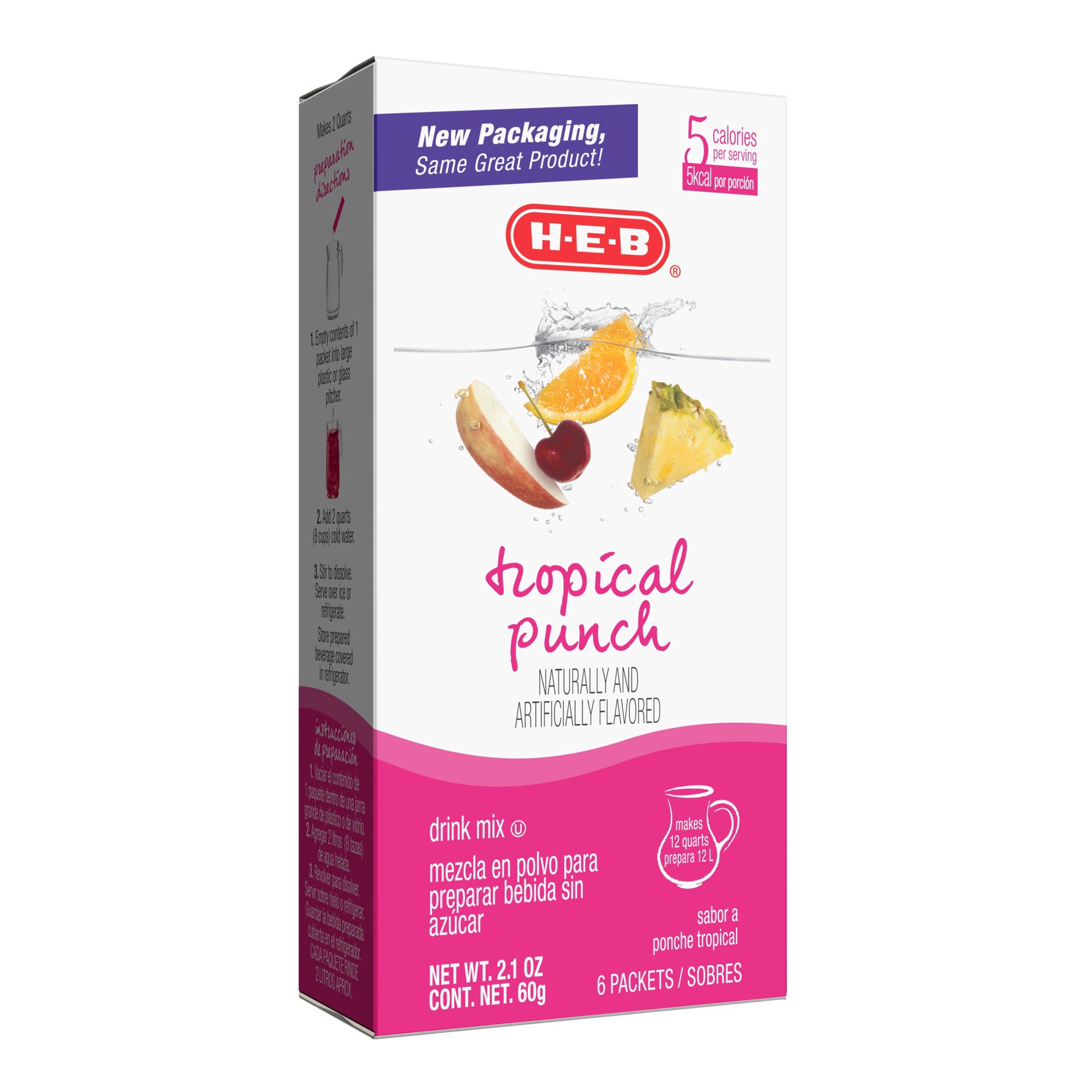 Get out your pitcher and make 2 quarts of tropical punch with just one of these H-E-B drink mix packets. And with 6 packets in the box, you can keep the cool refreshment going! Each serving is only 5 …