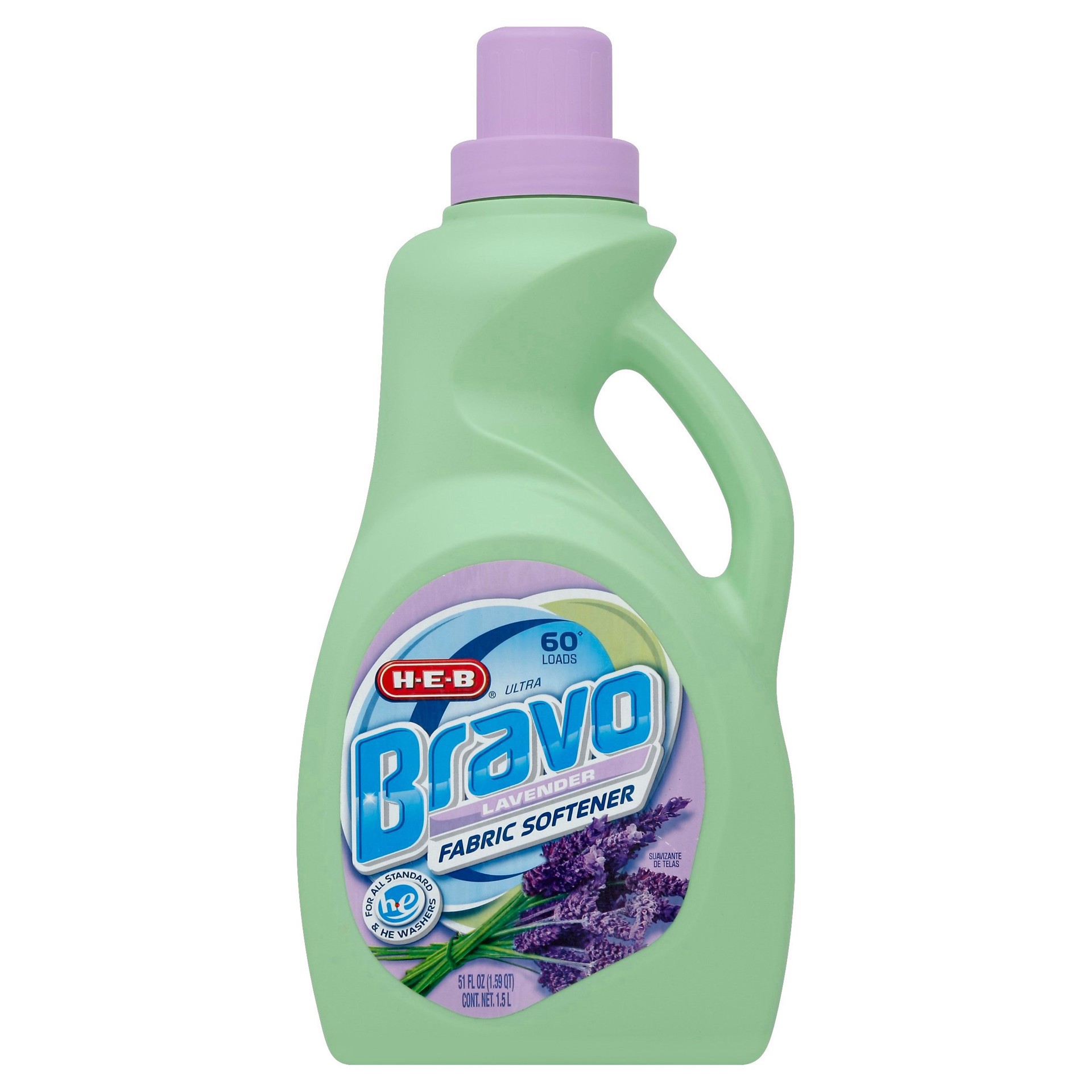 H-E-B Bravo Lavender Liquid Fabric Softener is concentrated and formulated for high efficiency (HE) washing machines.