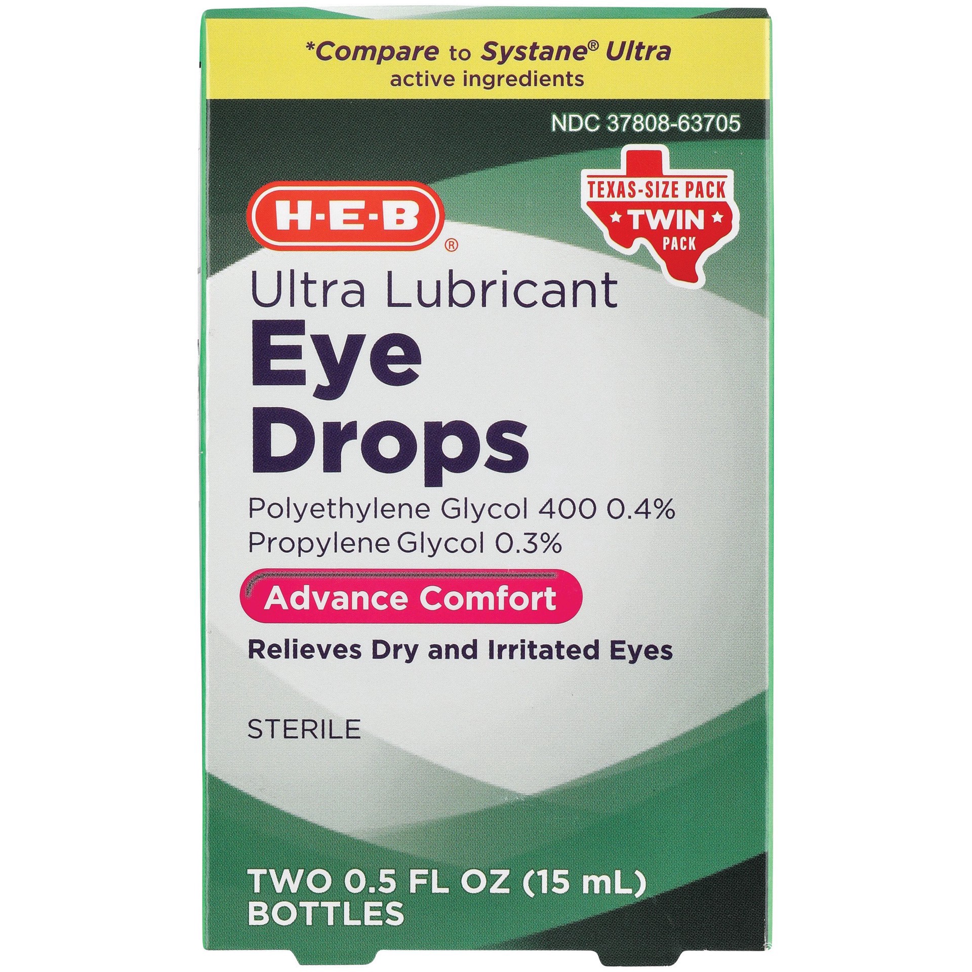 Relieve dry and irritated eyes with these H-E-B ultra-lubricating eye drops. Instill 1 or 2 drops in the affected eye as needed for long-lasting relief and soothing comfort.• Compare to Systane® Ultra…