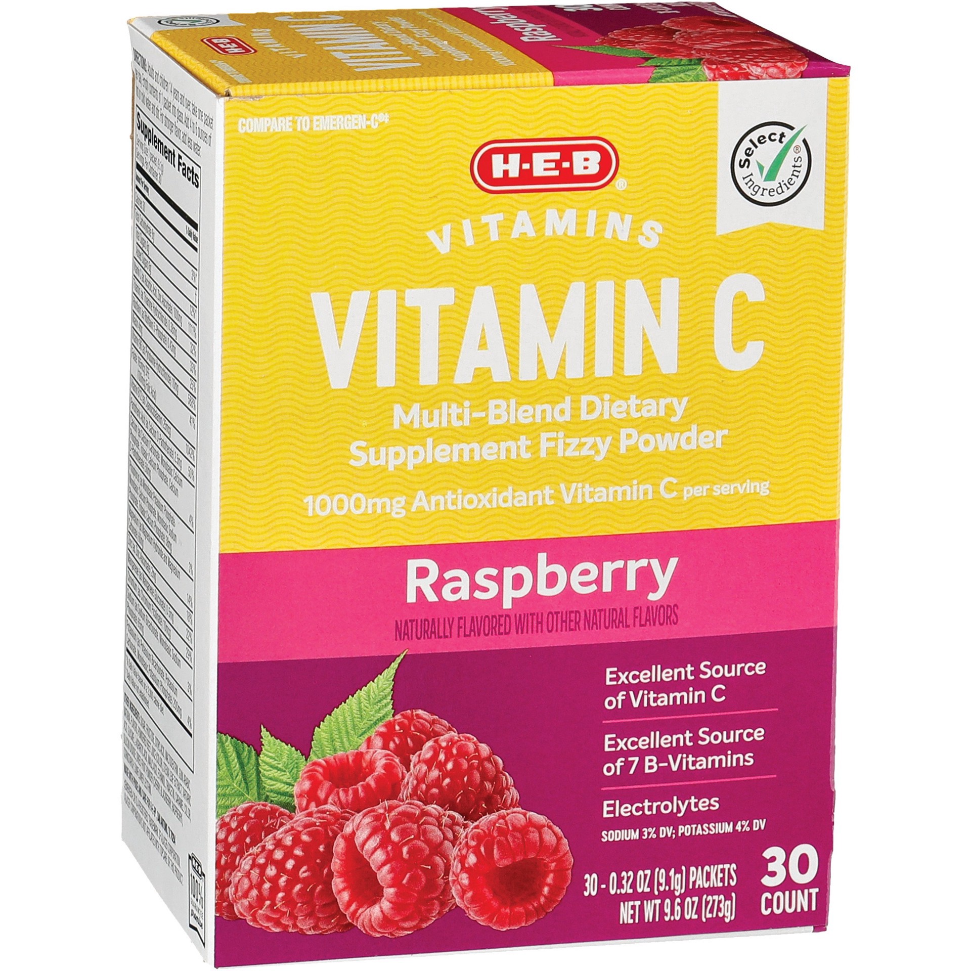 Take this H-E-B flavored fizzy vitamin C drink mix and get 1,000 mg of vitamin C per serving. Add this supplement to your routine for an excellent source of vitamin C along with other vitamins and min…