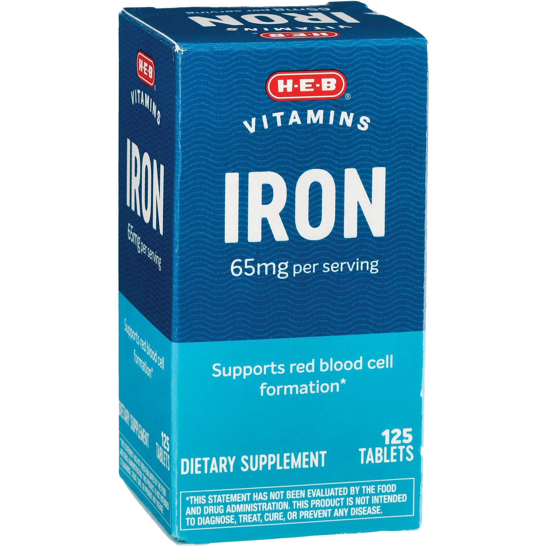 slide 1 of 1, H-E-B Vitamins Iron 65mg Tablets, 125 ct