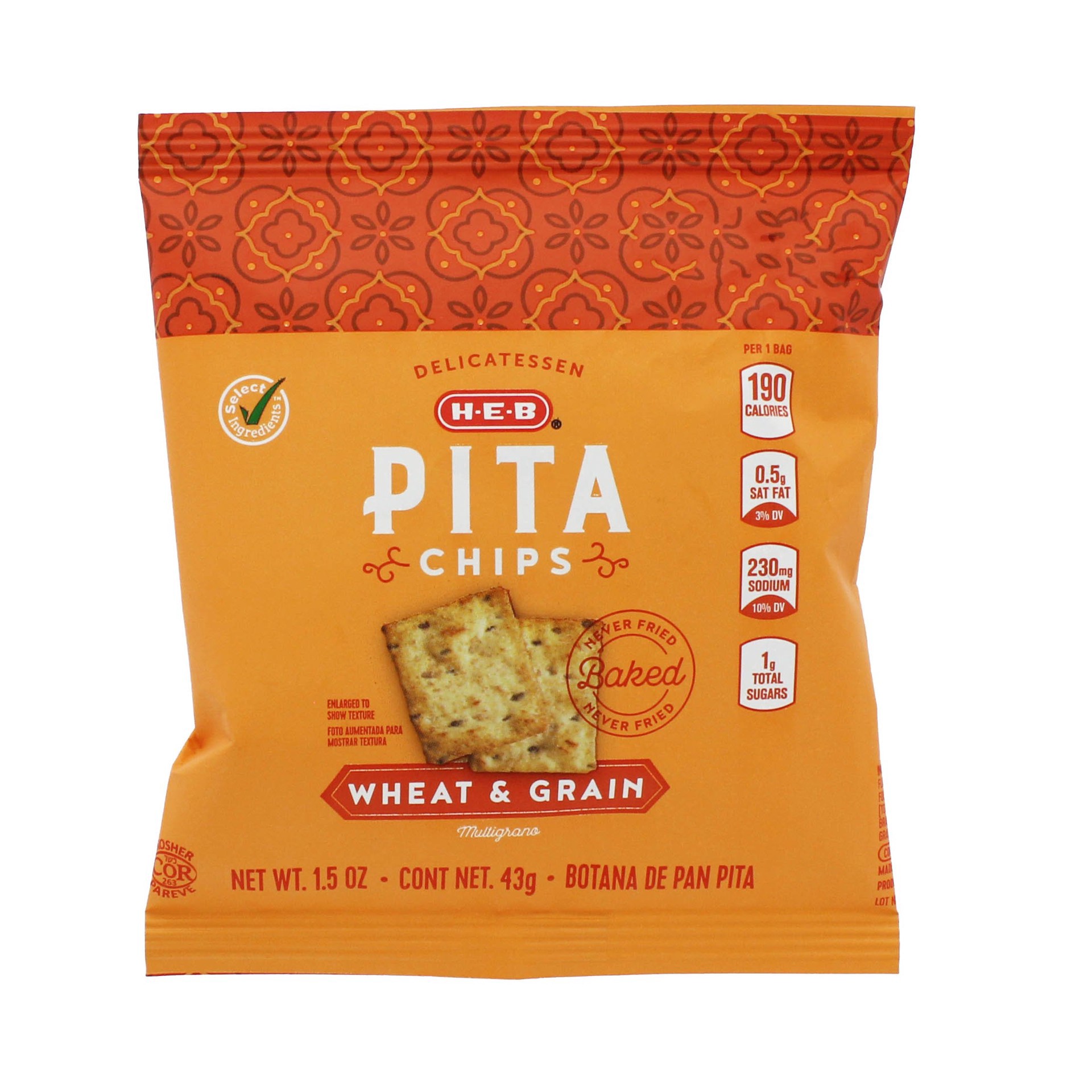A perfect size for tucking into your backpack or purse, these H-E-B pita chips are baked and never fried for that light, puffy crunch you love. Plus, this hearty Wheat & Grain variety goes great with …