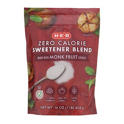 Indulge your sweet tooth with H-E-B Zero Calorie Sweetener Blend made with Monk Fruit Extract! This versatile sweetener blend can be used to sweeten your favorite beverages or fruits.