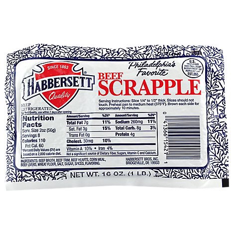 slide 1 of 1, Habbersett Beef Scrapple 16 oz, 16 oz