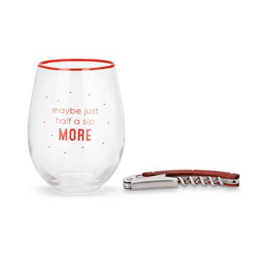 slide 1 of 1, Half A Sip More Wine Glass & Corkscrew Set, 1 ct