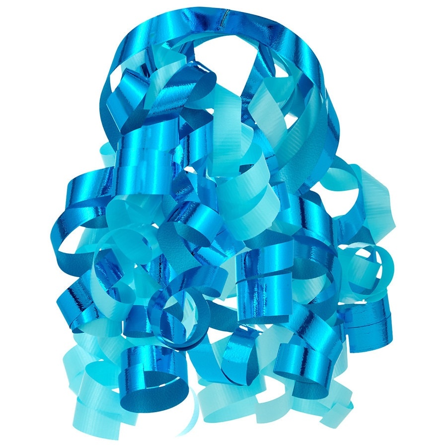 Create a fun gift presentation with this bright curly ribbon gift bow in shades of blue. Corkscrew curl bow features crimped aqua and metallic turquoise ribbons in ringlet form. Includes stickyback fo…