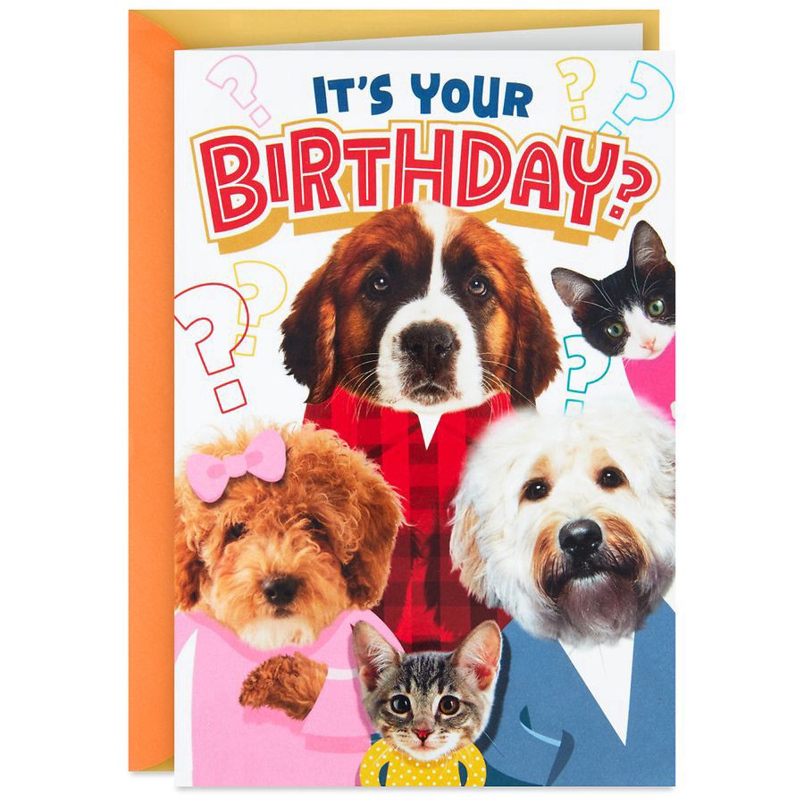 Share a smile and a fun pet pun with this funny birthday card. Hallmark pop-up birthday card features cute dogs and cats that pop out to deliver happy birthday wishes. It's a paw-sitively perfect birt…
