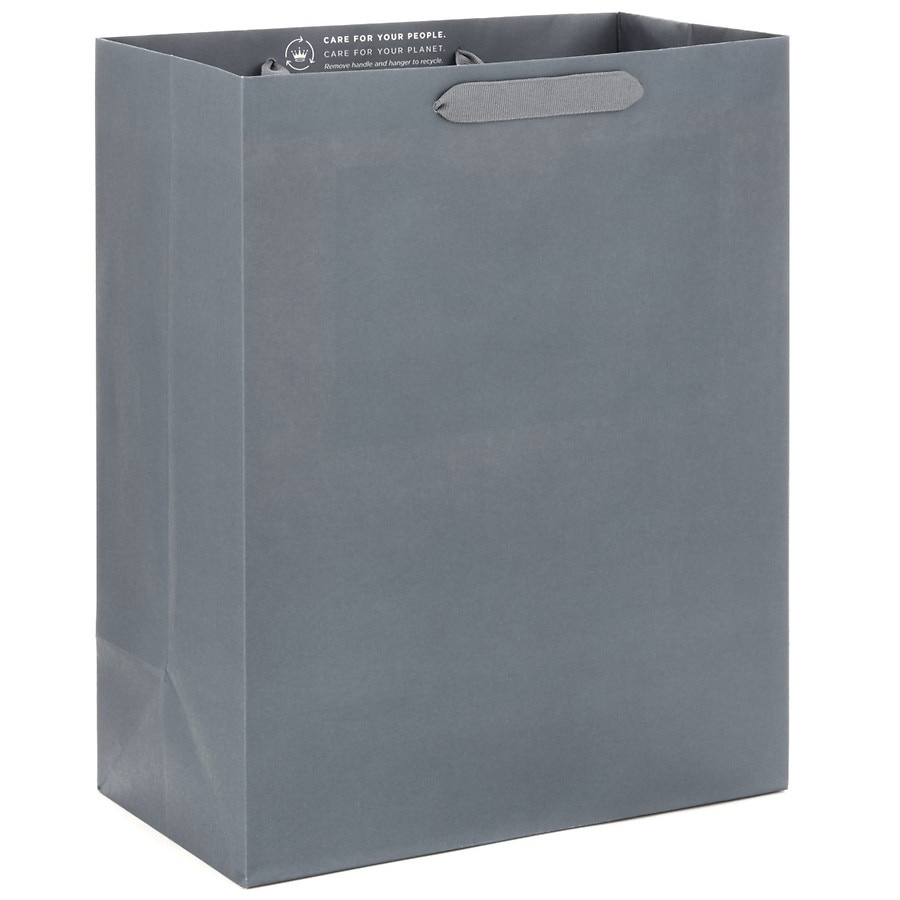 Suit up a gift in style when it's tucked inside this sleek gray gift bag. Large bag includes matching grosgrain ribbon handles and a matte finish. Visit the Hallmark department in your favorite Walgre…