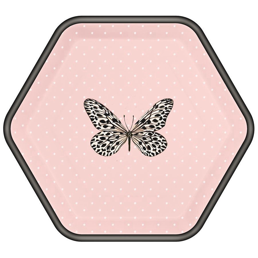 Add elegance to festive events with these pretty paper dessert plates featuring an upscale butterfly design on a pink background with polka dot details. Visit the Hallmark department in your favorite …
