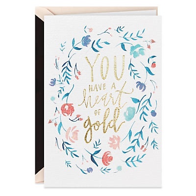 Cover Message You have a heart of gold. Inside Message Thank You Includes one thank you card and one envelope. Card size is 5 inches wide and 7.2 inches long. This Hallmark card features a floral …