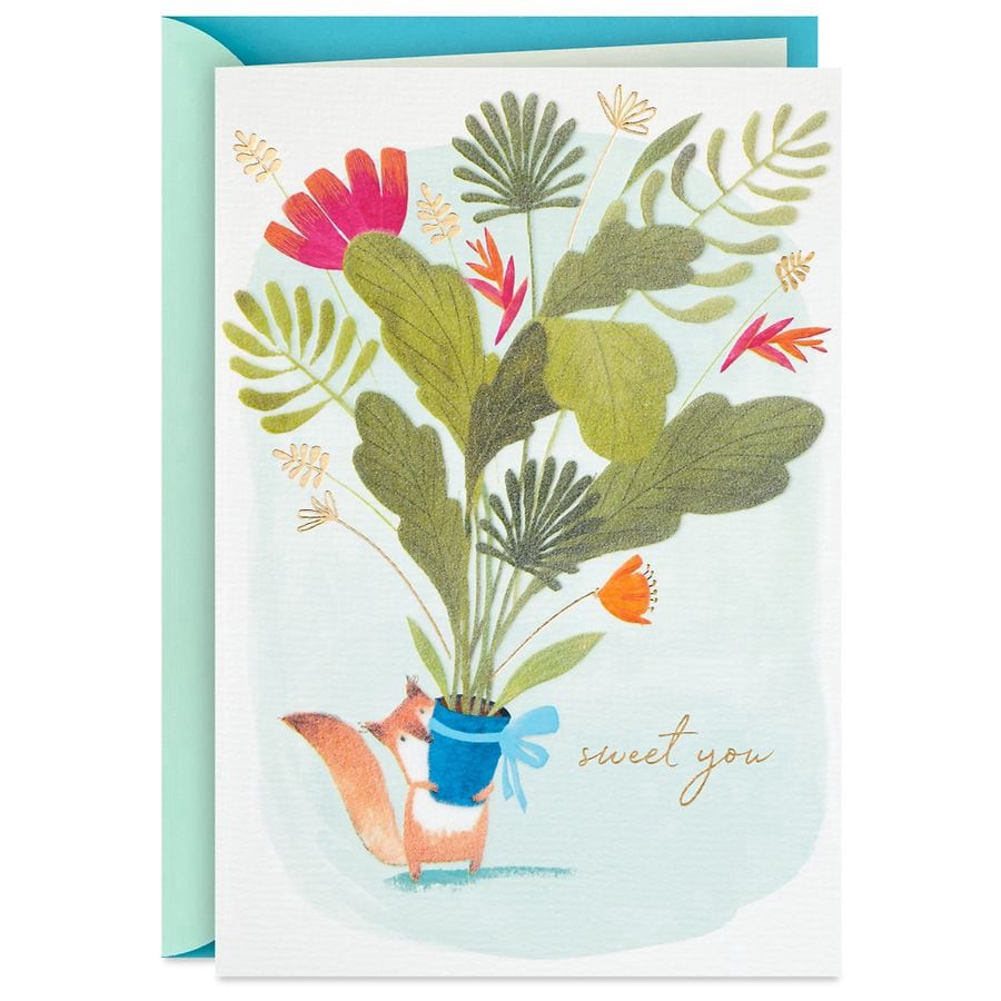 Express your gratitude with this cute thank-you note. Hallmark thank-you greeting card features a fox holding a pot of tropical flowers paired with a sweet, simple message of appreciation. Hallmark ha…