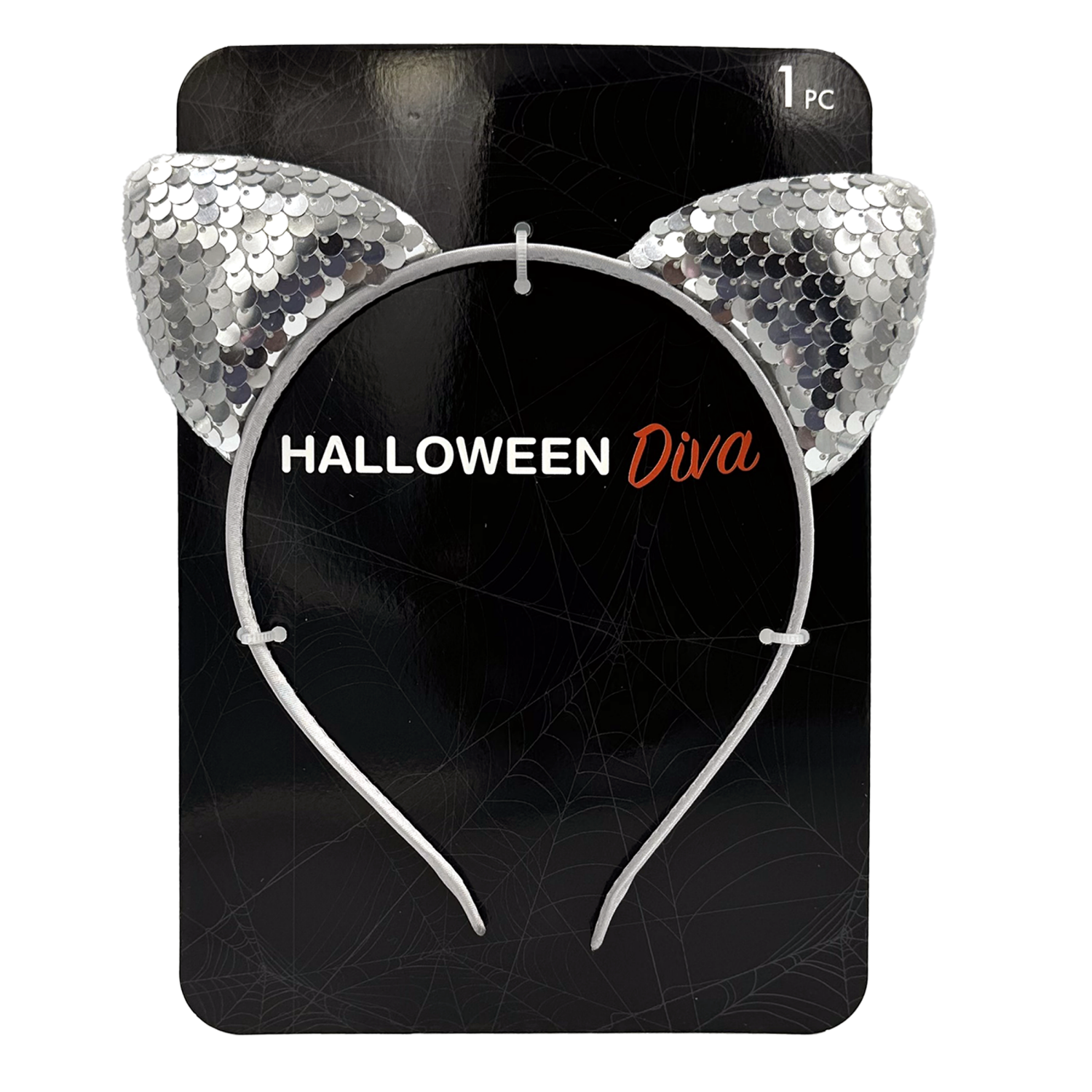 Halloween Cat Ears Headband, Sequins Silver, 1 Count