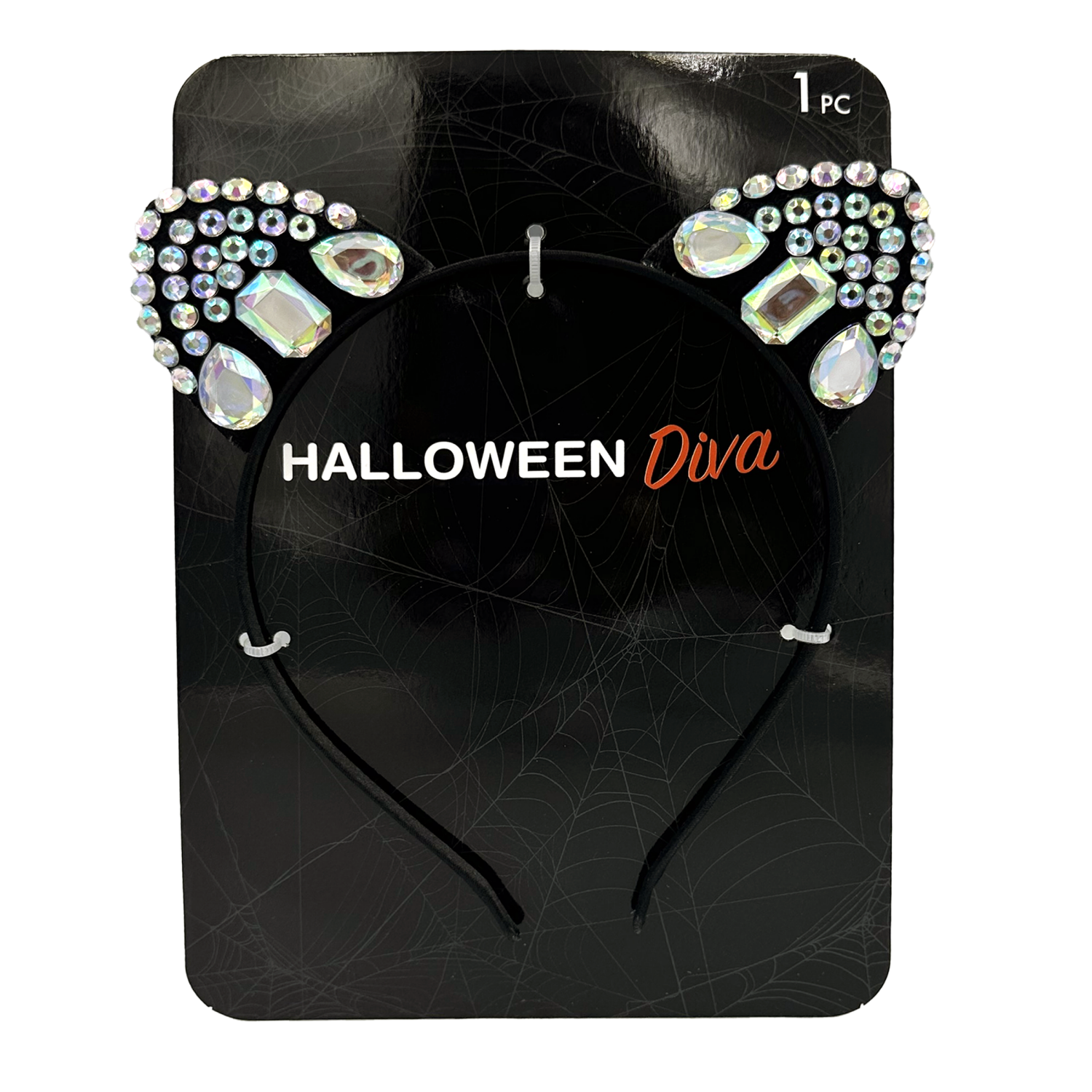 Halloween Cat Ears with Assorted Stone Headband, 1 Count
