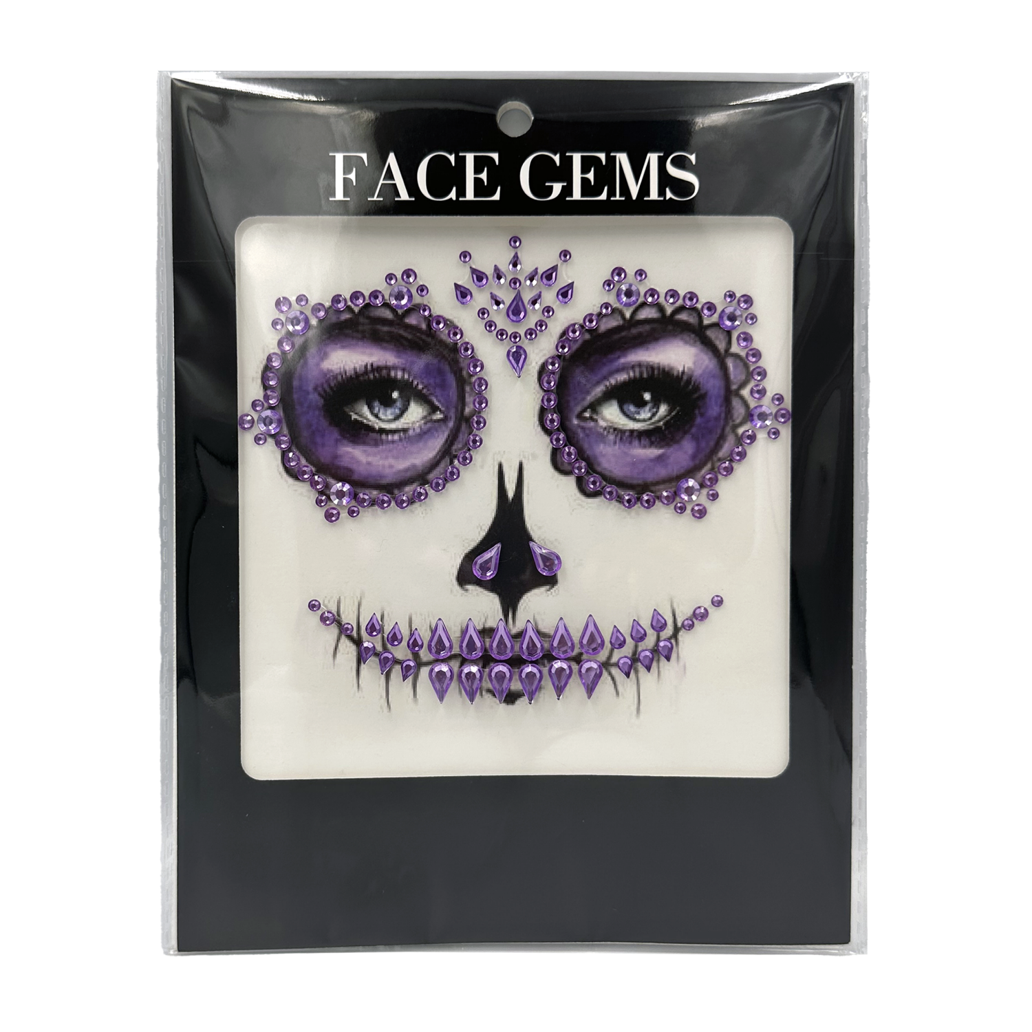 Halloween Face Gems are like wearing a mask but not! Easily applied to look mystereous for your Halloween enjoyment. Pretty purple gems strategically placed in assorted sizes, can make everyone look l…