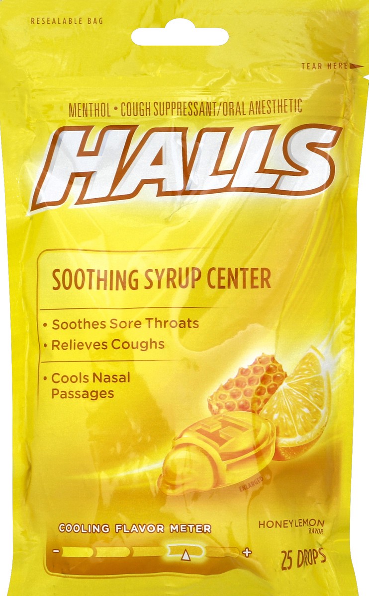 Other Information: 15 calories per drop. Contains: soy. Misc: Soothes sore throats. Relieves coughs. Cools nasal passages. Find your level of cool! Let the cooling flavor meter guide you. gethalls.com…