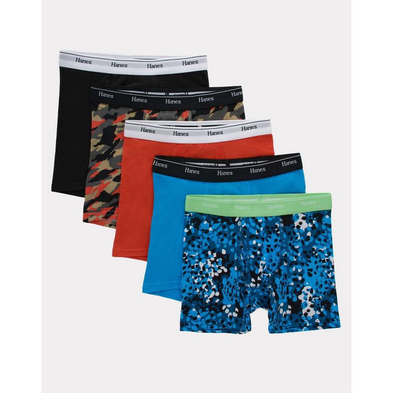 - ASSORTED COLORS – 5-pack features fun prints and lively colors with contrasting logo-branded waistbands.