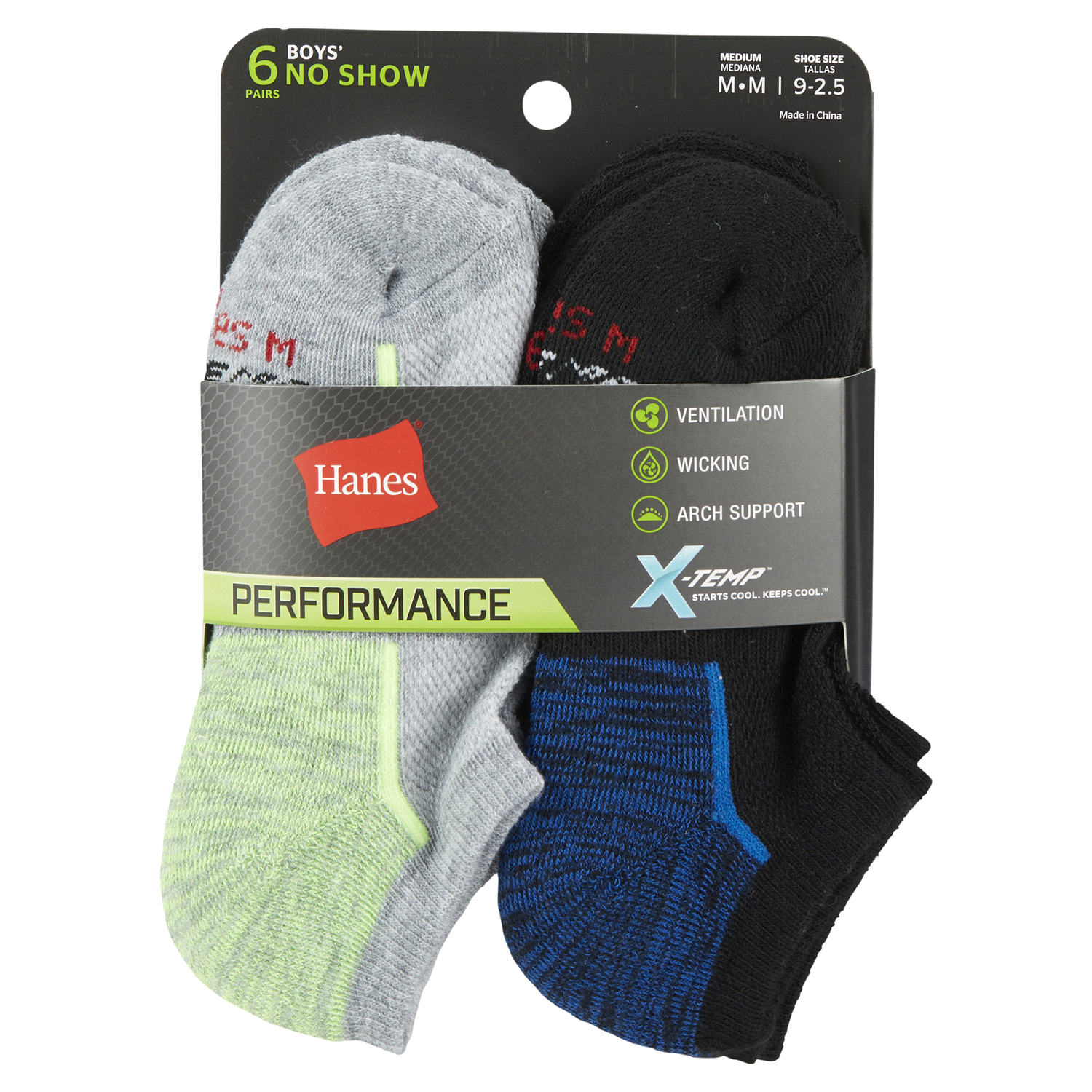 slide 1 of 5, Hanes Boys' Performance No Show Socks Medium 6 ea, 6 ct