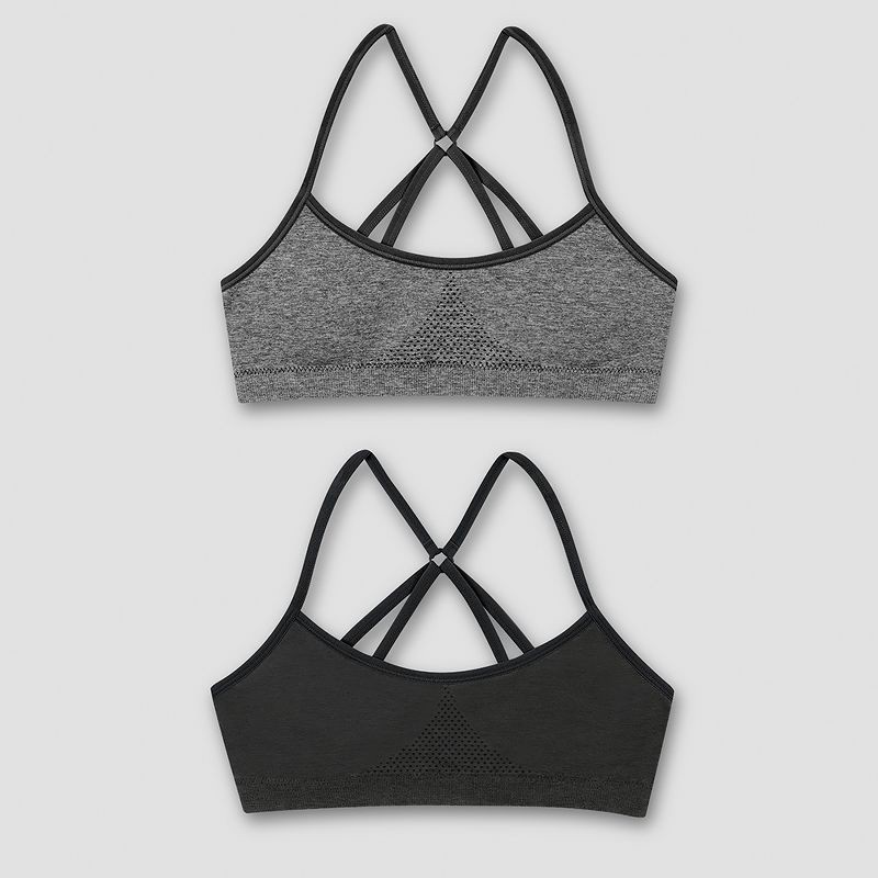 Hanes Girls' 2pc Seamless Foam Strappy Back Wirefree Bralette - Gray/Black S