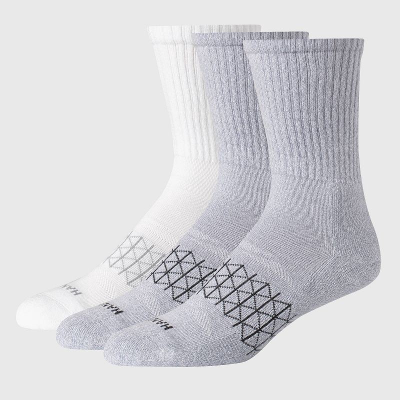 Hanes Men's 3pk Absolute Active Cushioned Crew Socks - White/Gray 6-12: Arch Support