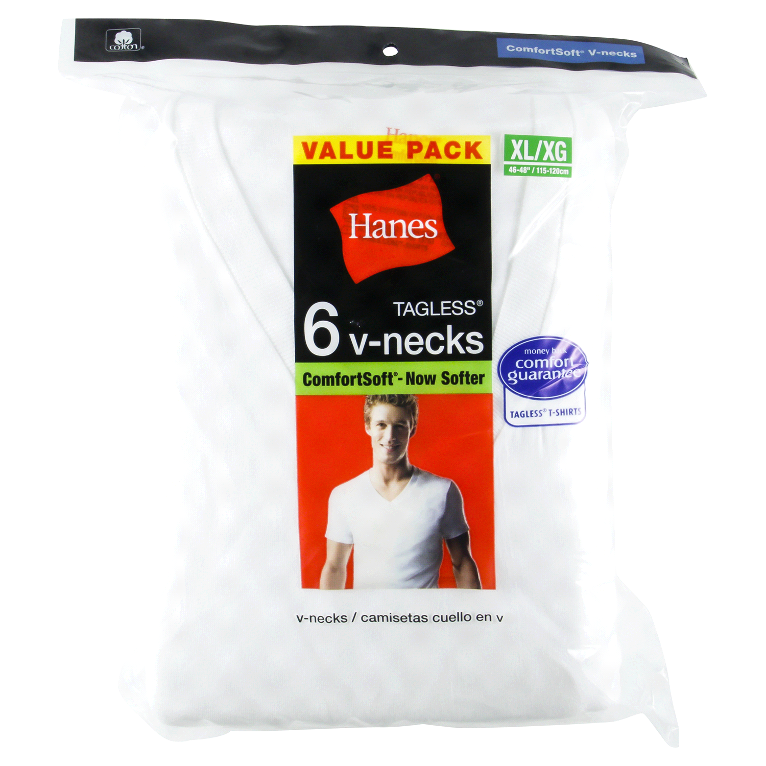 Hanes Men's White V-neck Tees are available in a convenient pack of 6. With super soft ComfortSoft fabric, these tees offer everyday, all day comfort from the brand you trust. FreshIQ advanced odor pr…