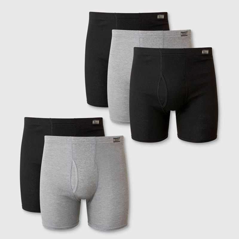 Hanes Men's Comfort Soft Waistband Boxer Briefs 5pk - Black/Gray XL: Tagless, Breathable, Moisture Wicking