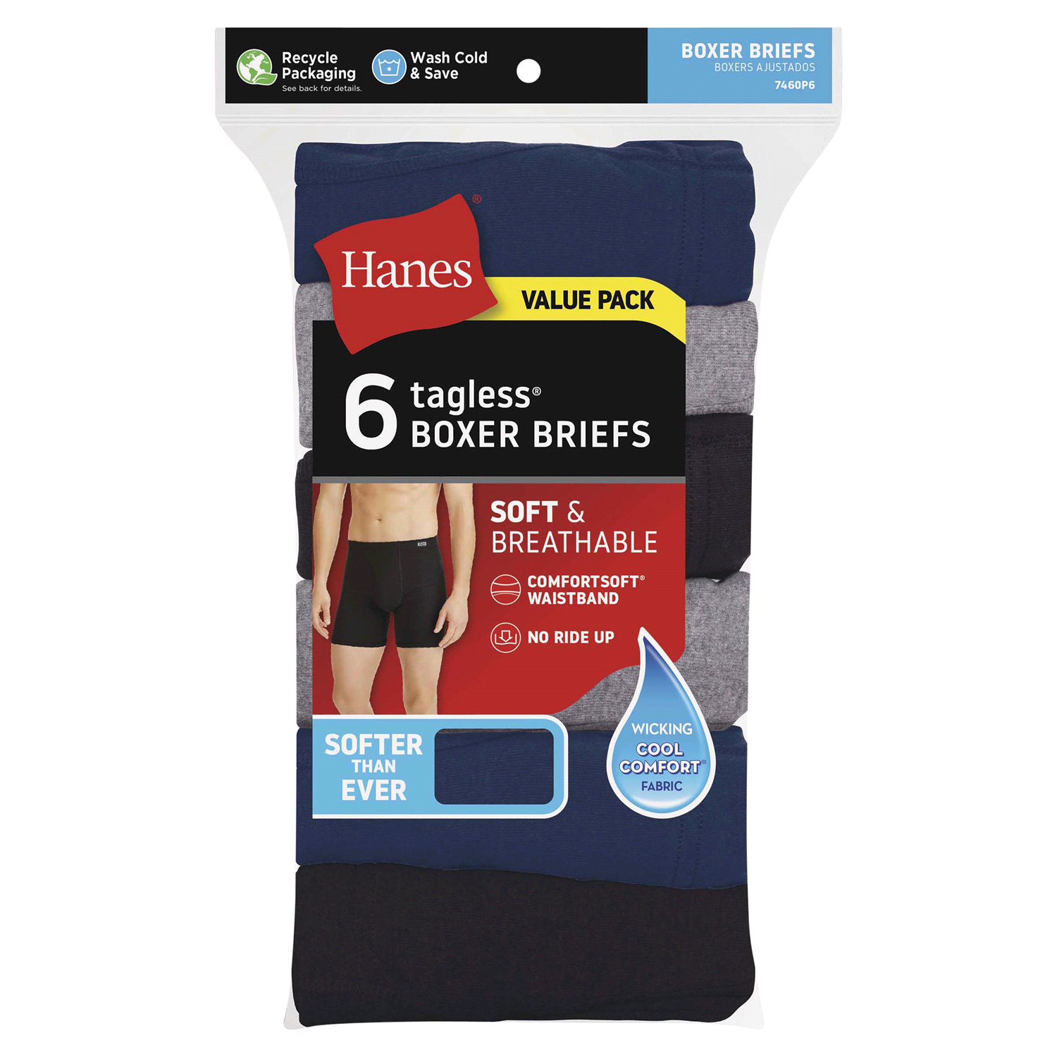 These Hanes Tagless Boxer Briefs offer everyday, all day comfort. These boxer briefs offer a No Ride Up fit, so they stay in place, and a fabriccovered ComfortSoft waistband to eliminate pinching and …