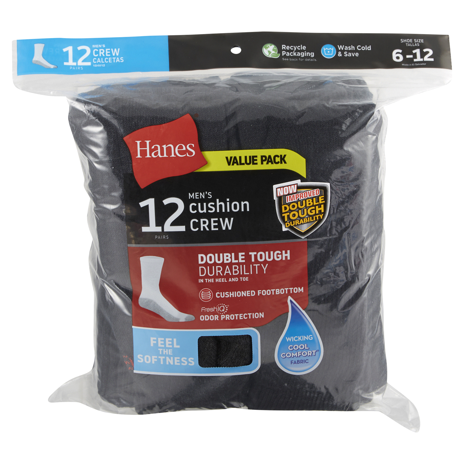 slide 5 of 5, Hanes Men's Crew Socks Black, 6-12, 12 ct