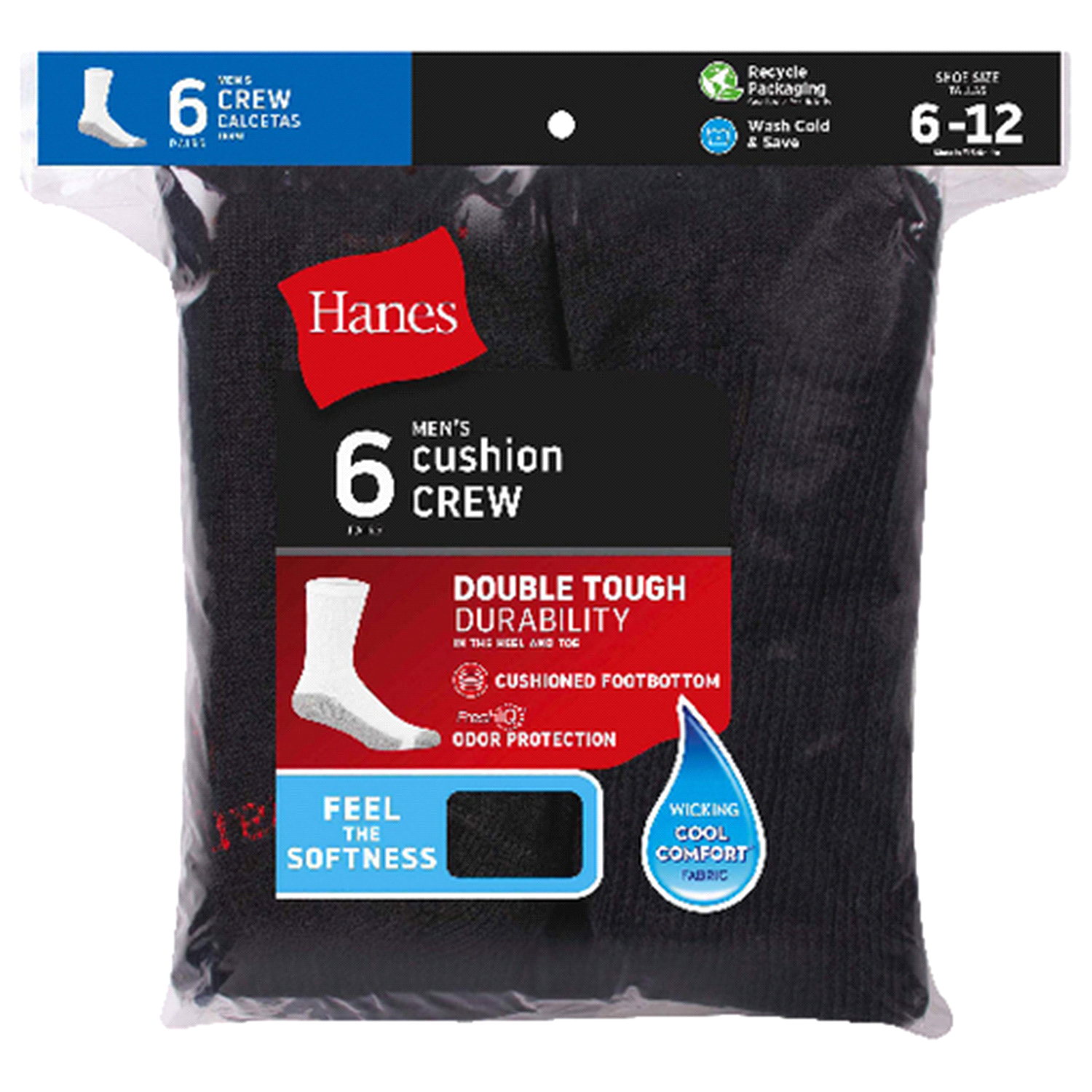 slide 2 of 2, Hanes Men's Cushion Crew Socks 6 ea, 6 ct