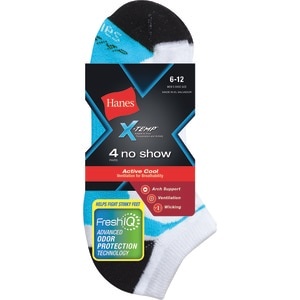Mens XTemp No Show Socks have wicking to keep feet cool and dry, Arch Support for a nonslip and supportive fit around the foot, and cushioned heel and toe for all day comfort in the zones your feet ne…