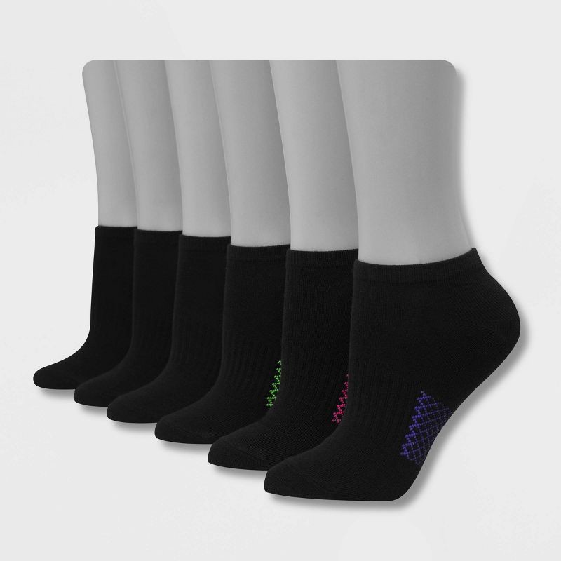 Hanes Performance Women's Extended Size Lightweight Textured Arch 6pk No Show Athletic Socks - Black 8-12