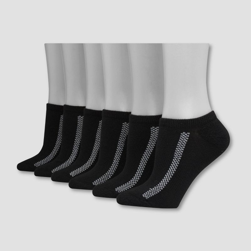 Hanes Premium Women's 6pk Heel Toe Cushion with Arch Support No Show Socks - Black 5-9