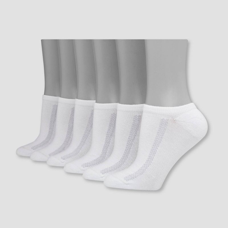 Hanes Premium Women's 6pk Heel Toe Cushion with Arch Support No Show Socks - White 5-9