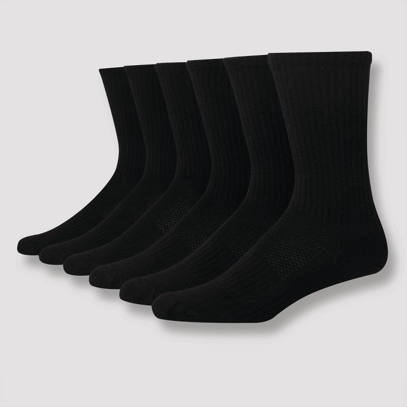 Hanes Premium Men's Hanes Moves Premium Performance Cushioned Crew Socks 6pk - Black 6-12: Moisture Wicking, Breathable, Ribbed Midweight Fabric