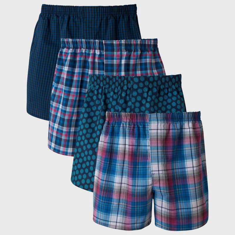 Hanes Premium Men's Stretch Woven Boxer Shorts 4pk - Blue/Green M: Tagless, Lightweight, Plaid Pattern