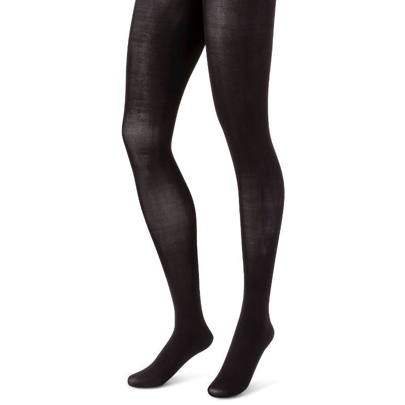 Hanes Premium Women's 2pk Opaque Tights - Black L: Nylon Spandex, High Waisted, Seamless Toe