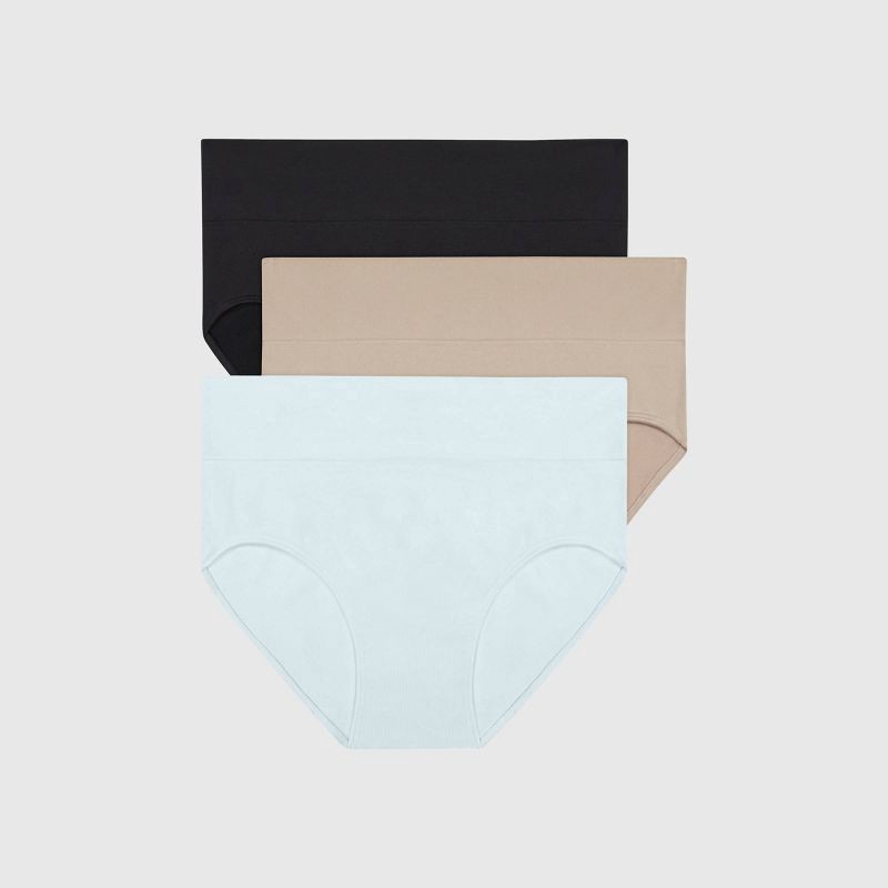 Hanes Premium Women's 3pk Smoothing Seamless Briefs Underwear - Basic Pack Beige/Light Brown/Black 5: Mid Rise Knit