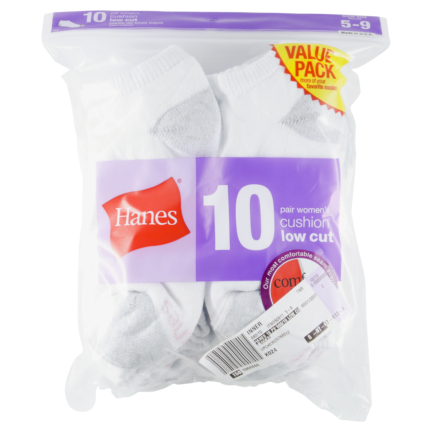 Avoid sock bulkiness at the ankle with Hanes Women's 10pk Low Cut Cushion Socks in white, one size fits all. These low cut socks are great with tennis shoes, booties and more. The soft fabric and last…
