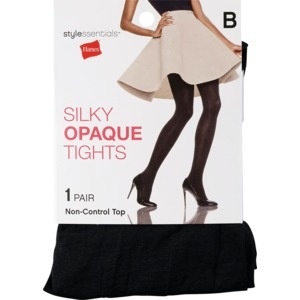 Size B, Black NonControl Top Our beautiful silky opaque tights offer a flawless fit and the noncontrol top means comfort all day long. 96 Nylon, 4 Spandex