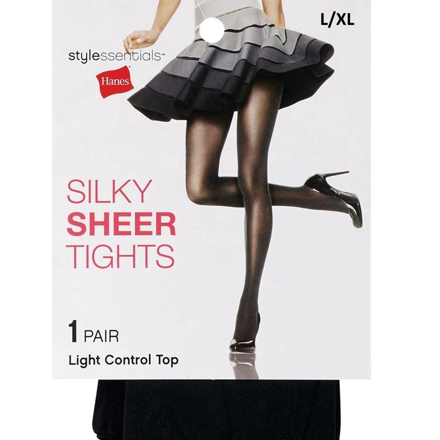 Hanes Style Essentials Silky Sheer Tights, Black, L/xl