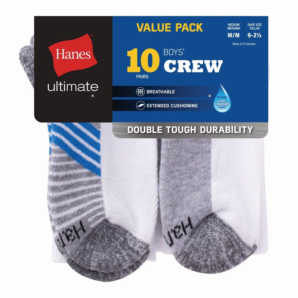 Hanes Ultimate Double Tough Crew Socks - Assorted White