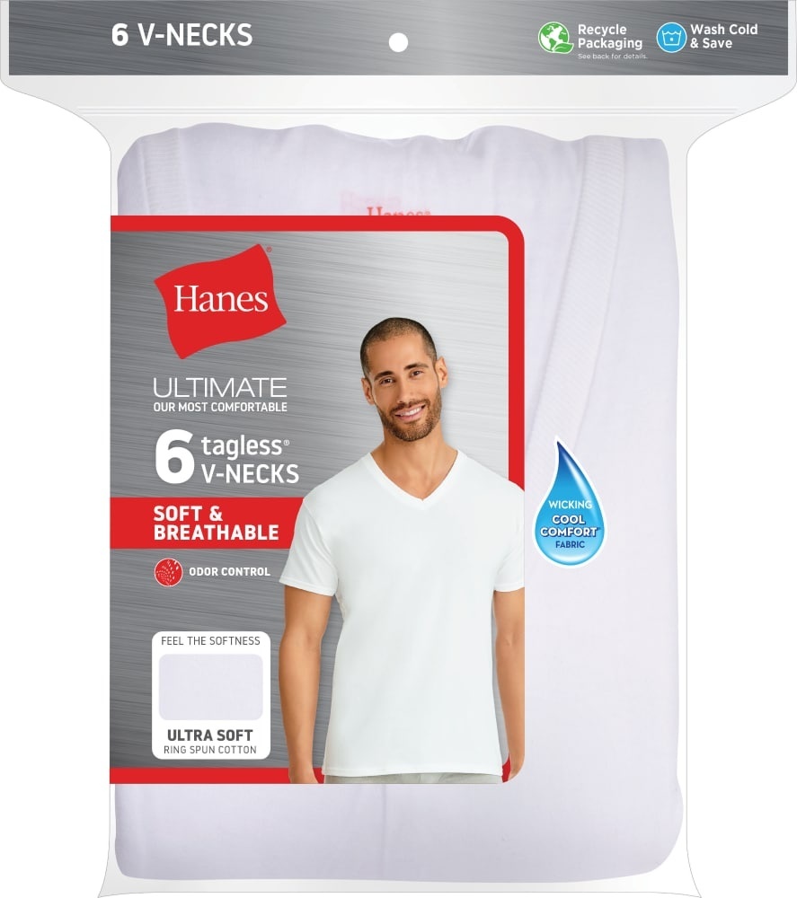 Hanes Ultimate Mens White V-Neck T-Shirt is made with super soft premium cotton. Ultimate is our most comfortable and made from premium cotton and specially finished for superior softness.V-NeckUltra …