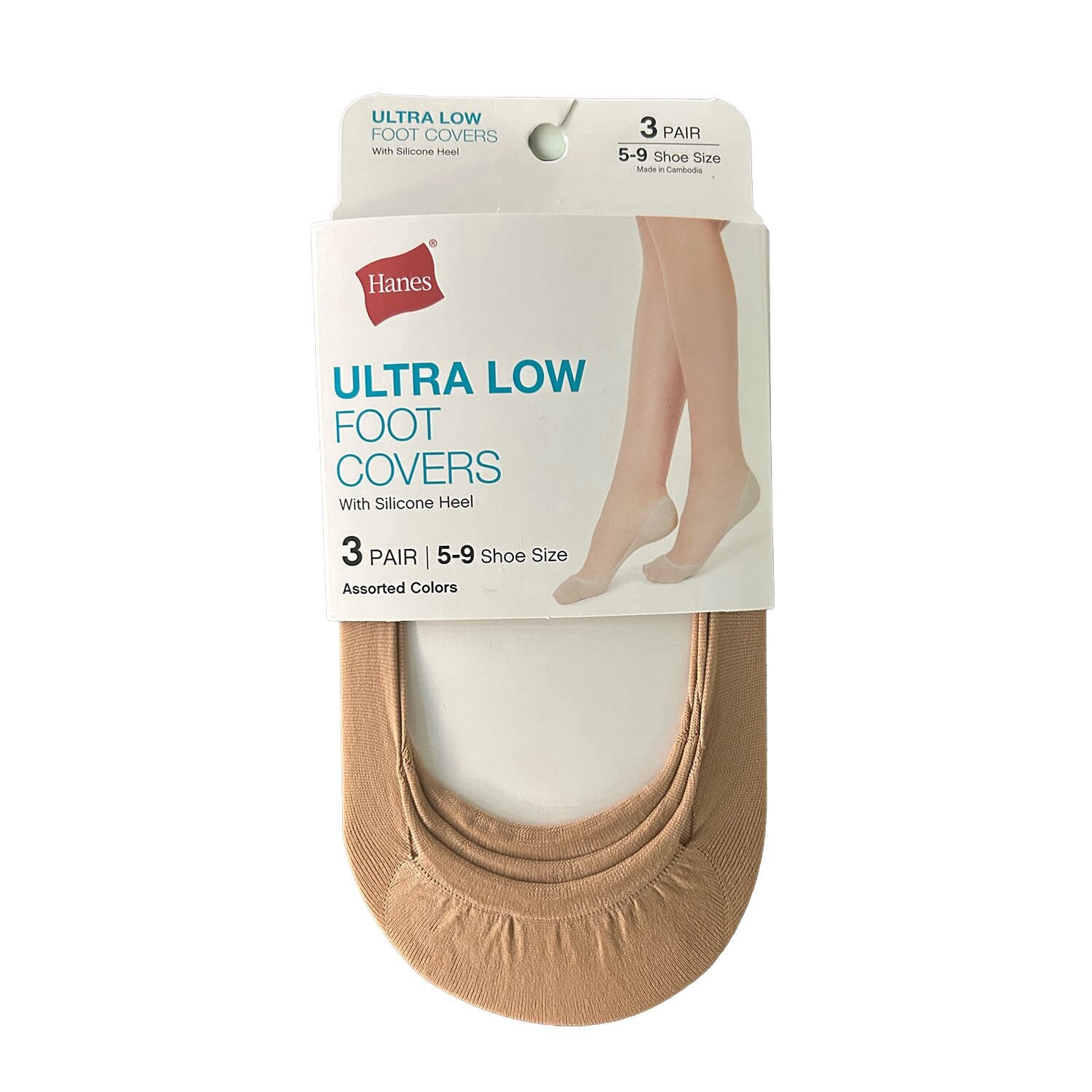 Hanes Ultra Low Foot Covers, Nude, Shoe Size 5-9, 3 Pr