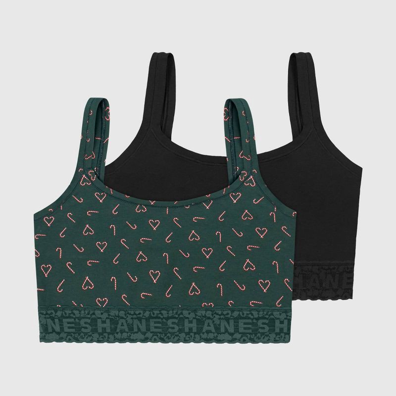 Get into the holiday spirit with this Hanes® Originals women's triangle bralette, available in a 2-pack of seasonal colors and playful prints. Made from soft, breathable stretch cotton with moisture-w…