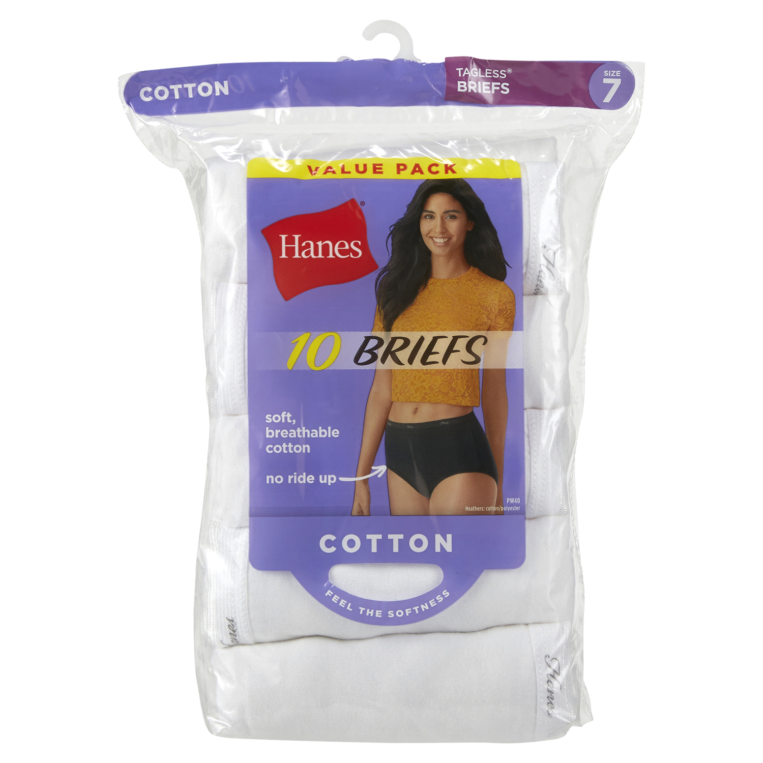 slide 1 of 1, Hanes Women's Cotton White Brief Size 7, 10 ct
