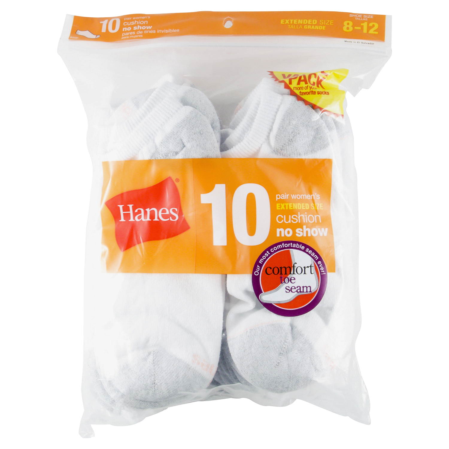 Hanes Women's Extended Size 10pk No Show Socks - White 8-12