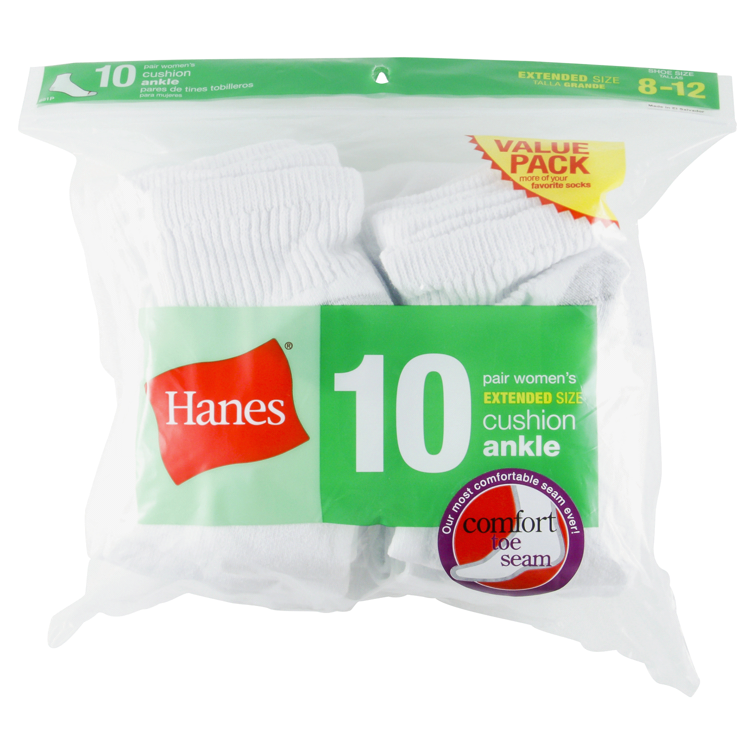 Stay on your toes with the Hanes Women's Extended Size Cushioned 10pk Ankle Socks. Fit shoe sizes 8-12. A smart buy, these Hanes socks for women are cozy, comfy and durable. They're made with comfort …